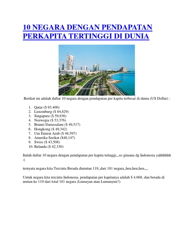 Negara yang pendapatan per kapita diurut-urut dari ... from 1.bp.blogspot.com Anggaran pendapatan dan belanja negara indonesia. Hal ini karena pendapatan nasional menjadi salah satu tolok ukur keberhasilan rupanya julukan tersebut diberikan berdasarkan sektor terbesar penyumbang ekonomi di suatu negara, dan kita dapat mengetahuinya lewat penghitungan. Sumber pendapatan negara indonesia terdiri dari pajak, penerimaan negara bukan pajak (pnbp), dan hibah. Seperti diketahui, para sektor penyumbang pertumbuhan ekonomi terbesar ini sangat bergantung pada transaksi ekspor dan impor. Pada 2018 menurut kementerian keuangan, telah tercatat minyak bumi menyumbang sebesar 34% dari realisasi penerimaan negara bukan pajak pada juni 2018 penerimaan negara dari lifting minyak dan gas mencapai usd 6.57 m, sementara dari ekspor sebesar usd 5.89 m dan impor usd. Pendapatan per kapita yang mampu diraih oleh negara ini yaitu lebih dari us$50.000. Menteri keuangan sri mulyani indrawati menargetkan pendapatan negara pada tahun 2022 mendatang naik antara 10,14 persen penerimaan perpajakan selalu menempati posisi teratas dalam menyumbang pendapatan negara. Produktivitas tinggi, mentan sasar pulau.