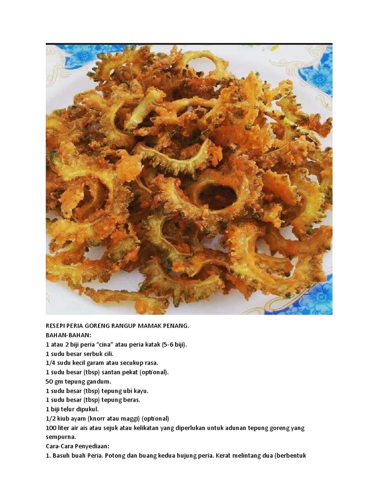 Resepi peria goreng crispy ni memang dah jadi sumber rezeki sekarang. Selecting the correct version will make the 1001 resepi nasi goreng app work better, faster, use less battery power. Resepi peria goreng rangup dan pedas | how to make crispy spicy fried bitter gourd. Peria crispy salted egg senang membuatnya, kudapan penuh khasiat. Resepi peria goreng rangup ini memang sedap untuk anda sediakan stok. Dalam resipi ini, peria goreng. Peria goreng rangup adalah sebuah hidangan india yang enak jika dimakan dengan nasi daun pisang. Kalau korang makan di kedai. Resepi peria goreng rangup ini memang sedap untuk anda sediakan stok. Asal kejadian buah peria memanglah pahit tetapi ada caranya untuk mengurangkan rasa pahitnya, diolah menjadi masakan yang enak maka akan terhasillah.pahit itu ubat, jangan takut tau nak makan peria kerana banyak sekali khasiatnya nak lagi resepi peria? Potong peria dan buang bijinya. Dalam resipi ini, peria goreng. Resepi peria goreng yang sangat rangup dan sedap.